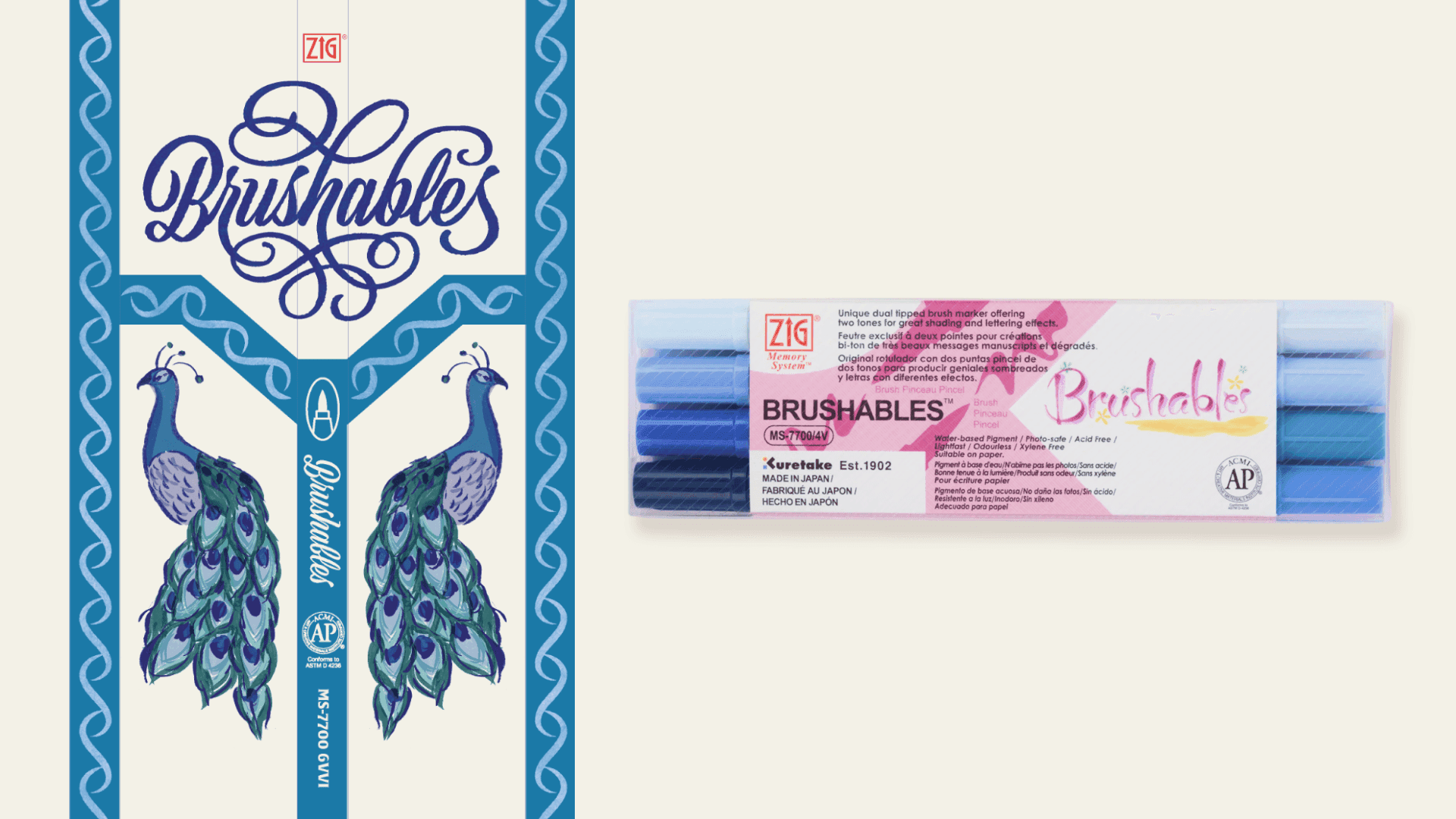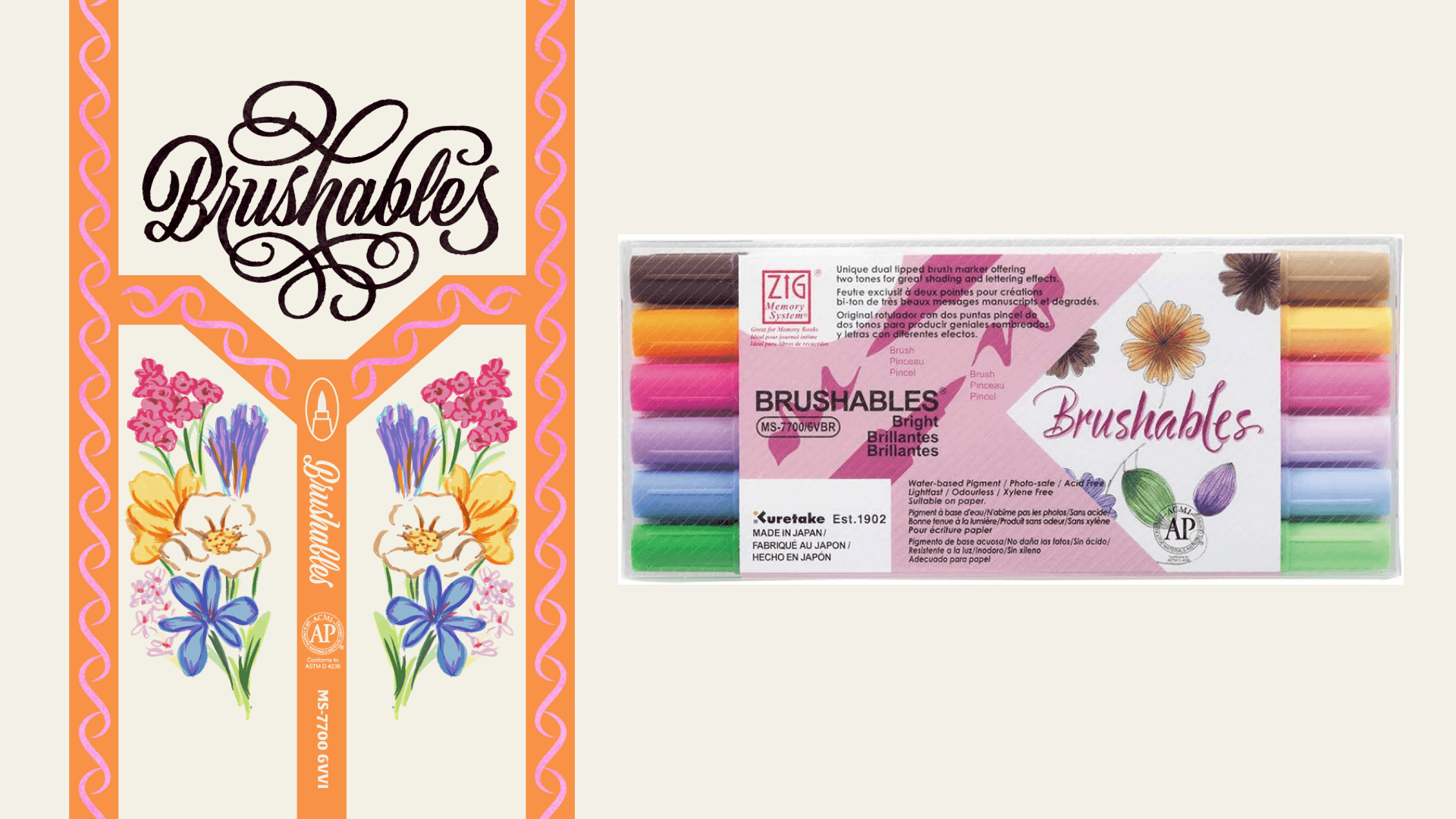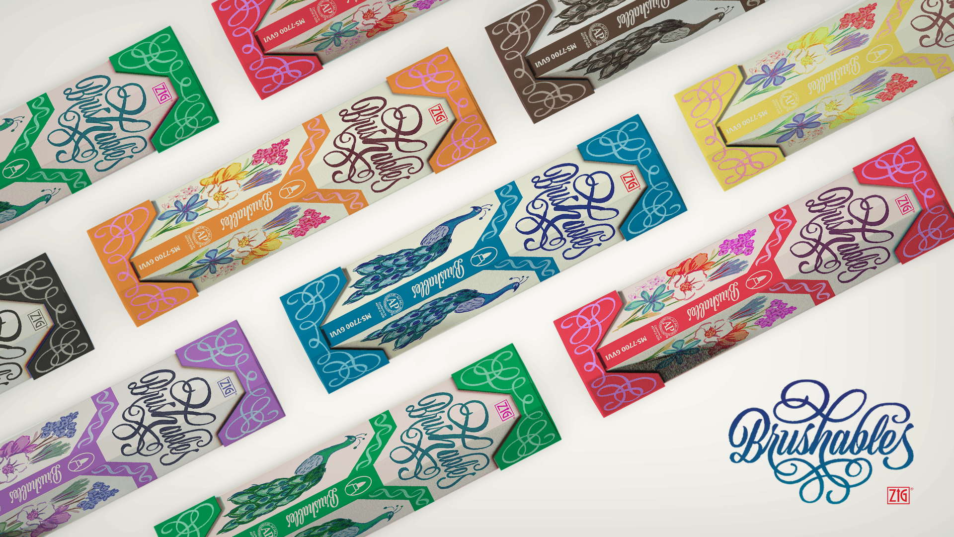 The redesigned graphics are inspired by vintage matchboxes with beautiful lettering and illustrations. They are meant to present consumers with artworks they can potentially create with the markers, as well as showcasing the color themes. The lettering and decorative trim are made out of the brush strokes from the markers, and the illustration utilized all the colors in the set.