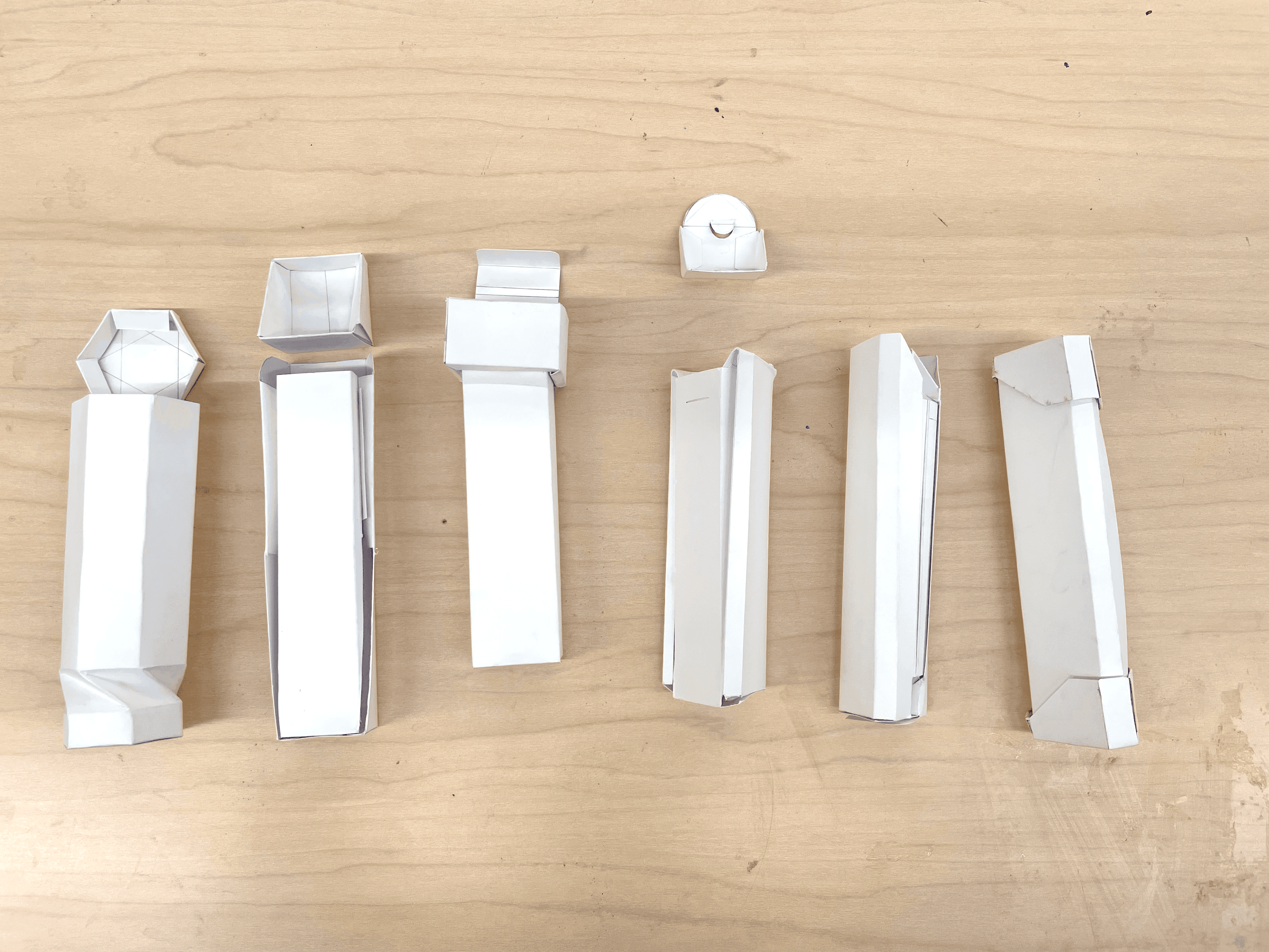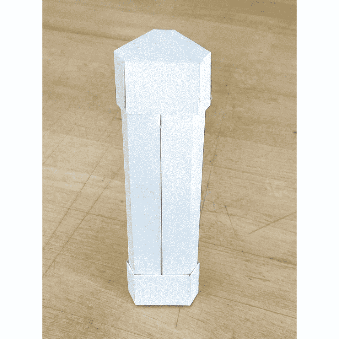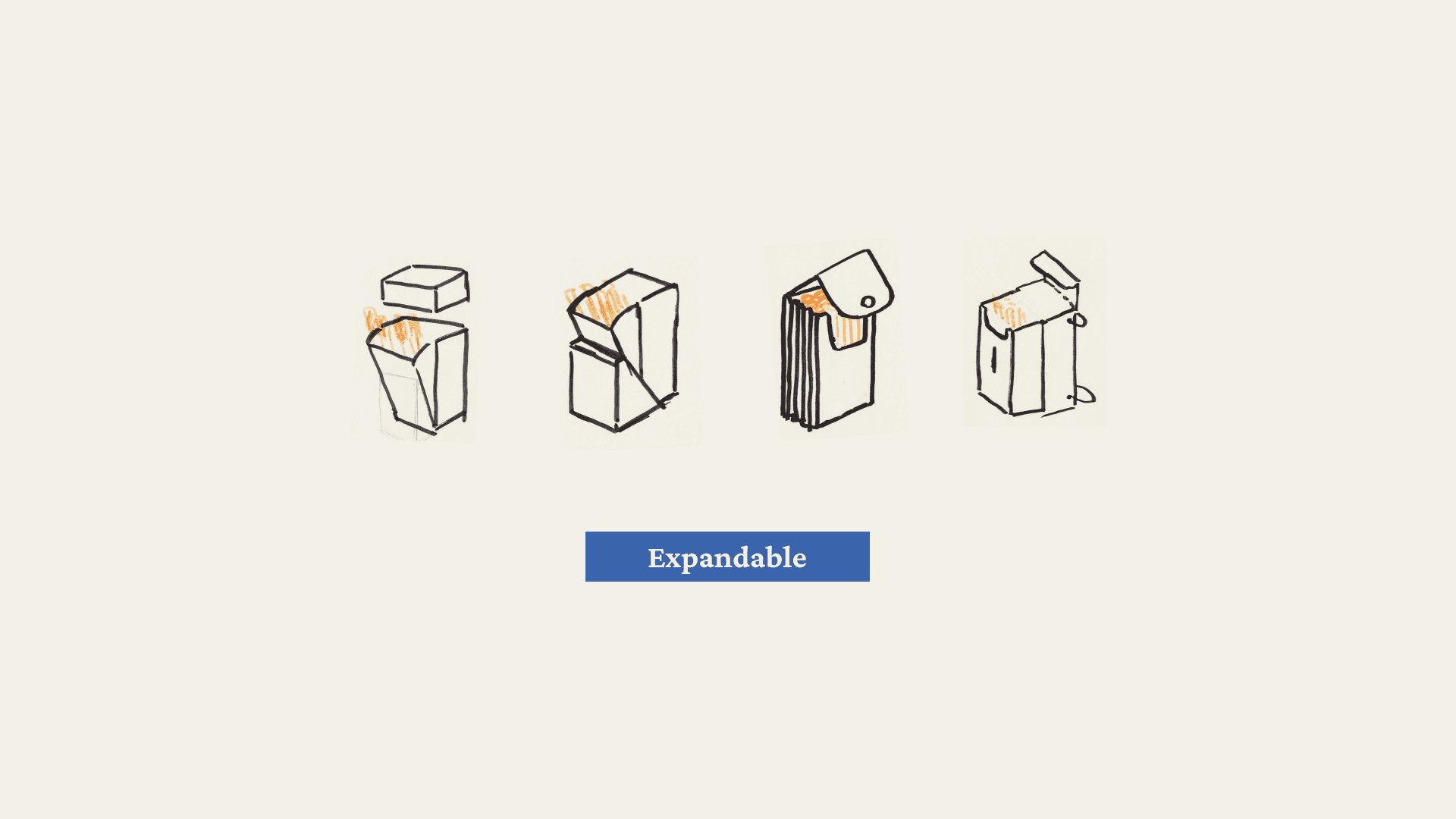 The final design combines some of the approach, is a triangular box that expands sideways, with 2 caps as stabilizing pieces.