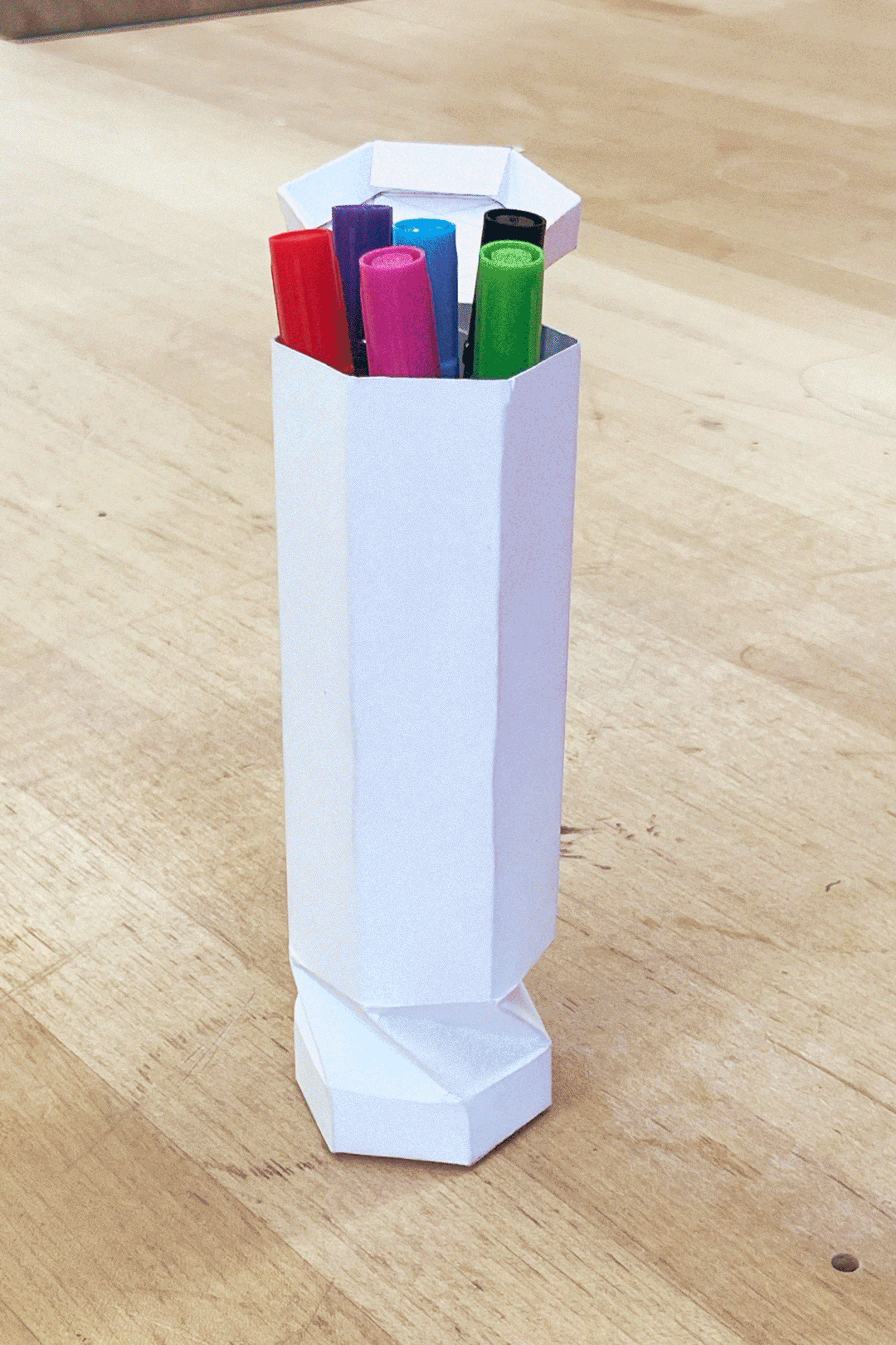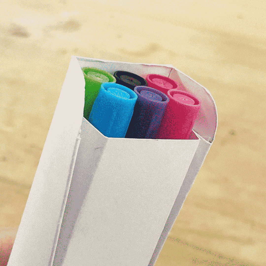 I aim to make my redesigned packaging not only serve as a storage solution, but also participate in the creation process, just like a pen holder. There are 3 goals: The markers should be easy to take out and put back, the packaging should stand on its own, and it should do that taking the least space possible, maintaining a tidy and organized workspace.